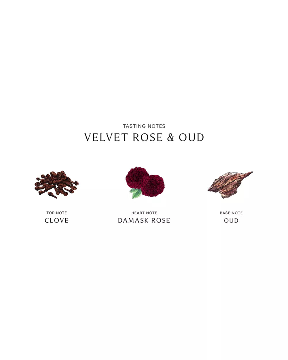 - Top notes: Clove - Middle notes: Damask Rose - Base notes: Oud